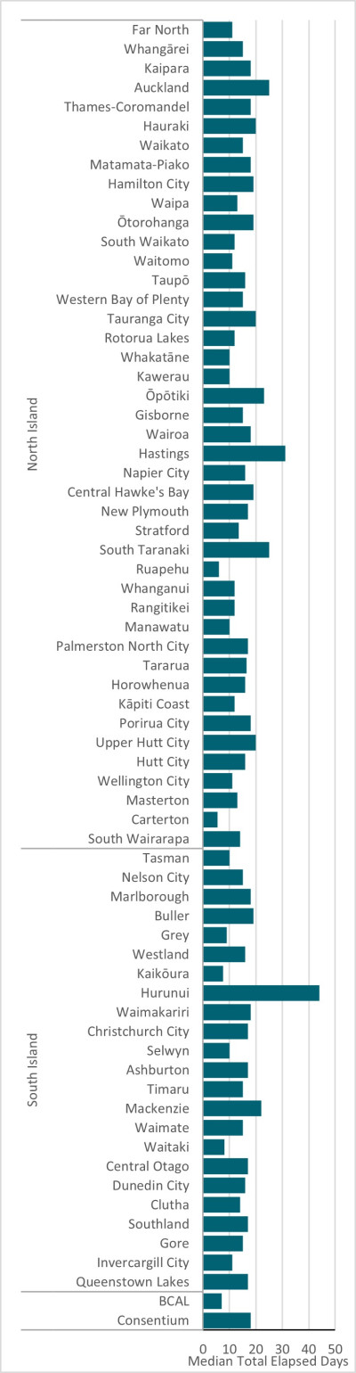 Figure 3. Median days to process applications for residential buildings, excluding regional authorities, Consentium and BCAL